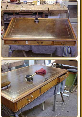 • Restauración, instalación de cuero sobre superficies de escritura (mesas,escritorios)
